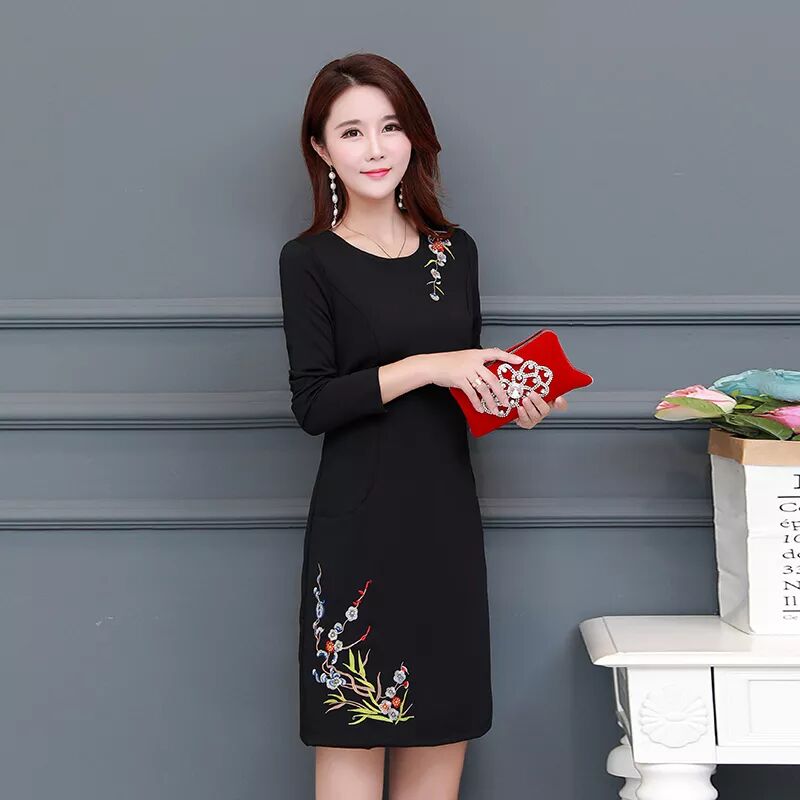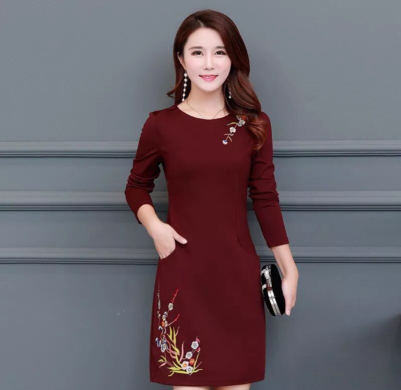 经典的中年妈妈装连衣裙,采用刺绣元素设计,十分彰显个性 外秉文雅内敛之设计风格