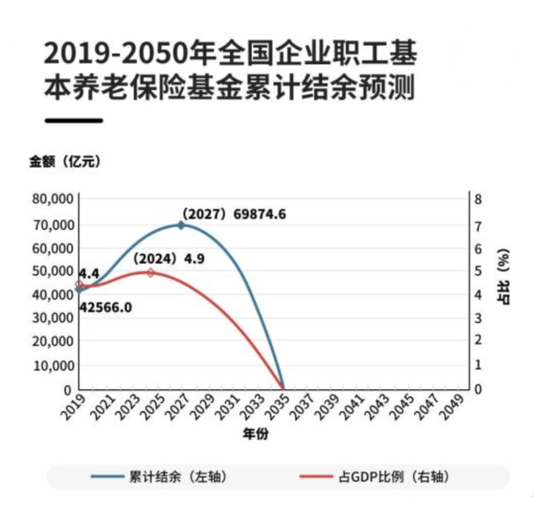 (基本养老保险基金预计在2035年耗尽 来源:中国社科院)