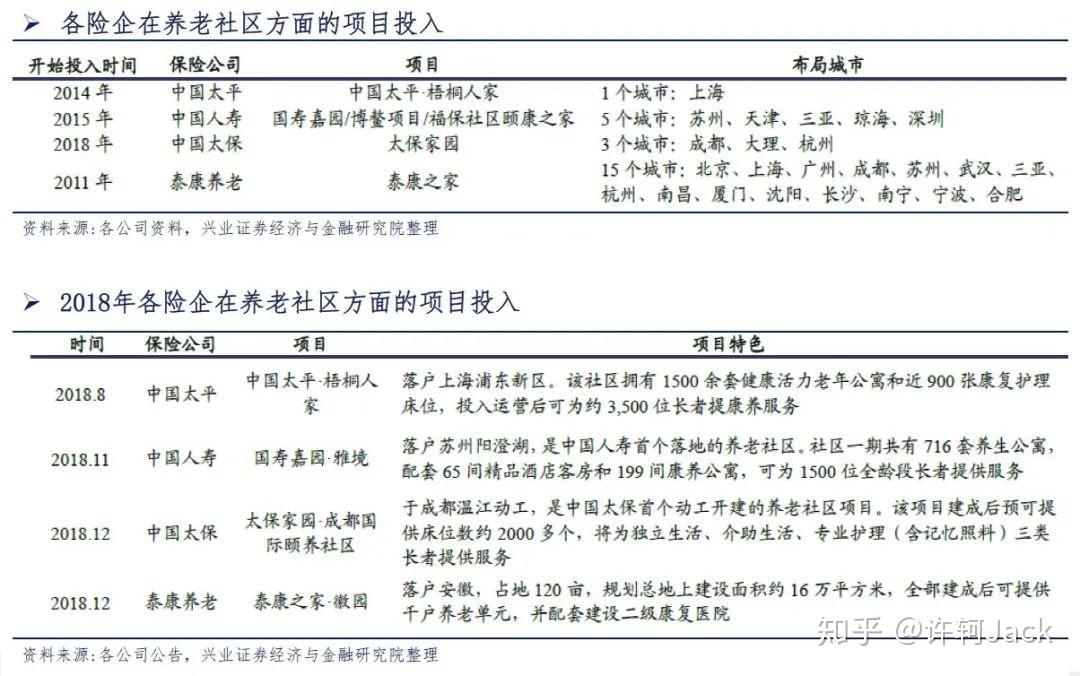 在养老社区这块,各家保险公司也在动作。泰康、太平、国寿、太保都已经建立养老社区。平安已入股碧桂园、融创中国、华夏幸福、旭辉控股等地产公司,布局养老社区。恒大人寿也同样在建立养生谷。