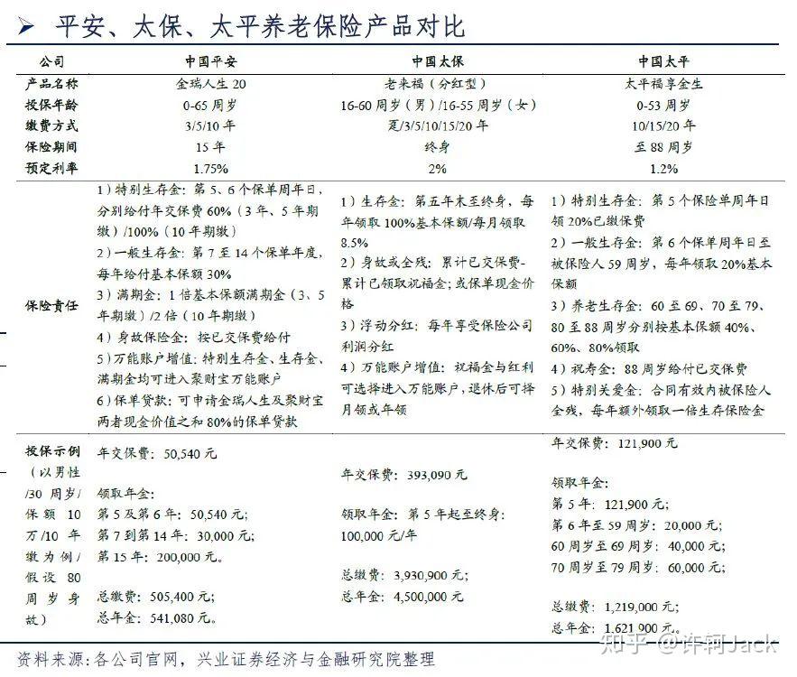 证券的研报提供的几家上市公司产品分析也一并摘录到本文内,但从保险专业度的角度分析,术业有专攻,本着利益最大化原则综合考虑市场中有更好的替代产品。但具化到产品会展开新的篇章,本文就不继续展开了。只是重申,若想通过商业保险实现养老金的规划配置,主要就是考虑年金险、增额终身寿、分红险即可。