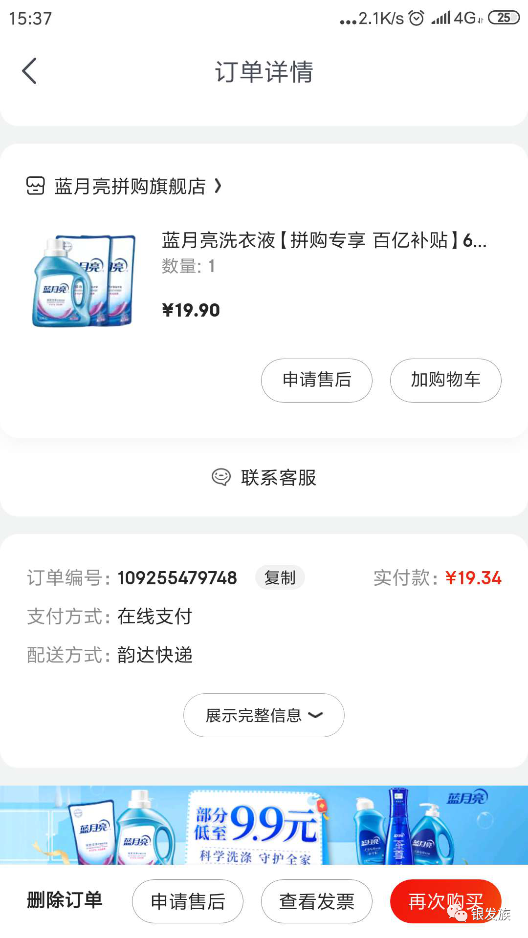 接着又19.9元买到6斤蓝月亮,京东正价49.9元,领30元内购券,并且是蓝月亮旗舰店的。