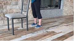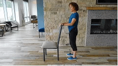 第八节:抬脚尖站立。手扶支撑物。抬起脚尖,在终点位置保持2秒钟,放下。重复10次。