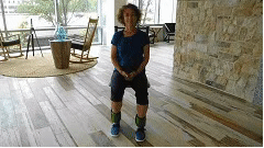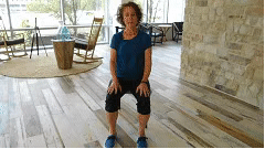 第六节:起坐坐在椅子上。站起来,保持3秒钟,坐下。重复10次。要身体条件许可的情况下,可以双手交叉胸前,做上面的动作。