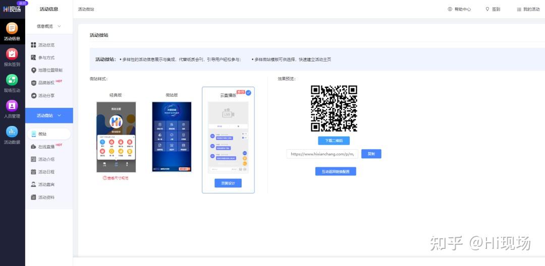 登录Hi现场官网,选择云直播版,将二维码分享到各个商家自有渠道即可轻松实现开播。