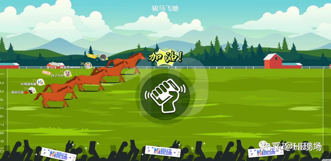观众通过摇动手机给马儿加速,冲向终点。店家可预设前几名奖励,游戏多轮进行,直播气氛轻松搞定。