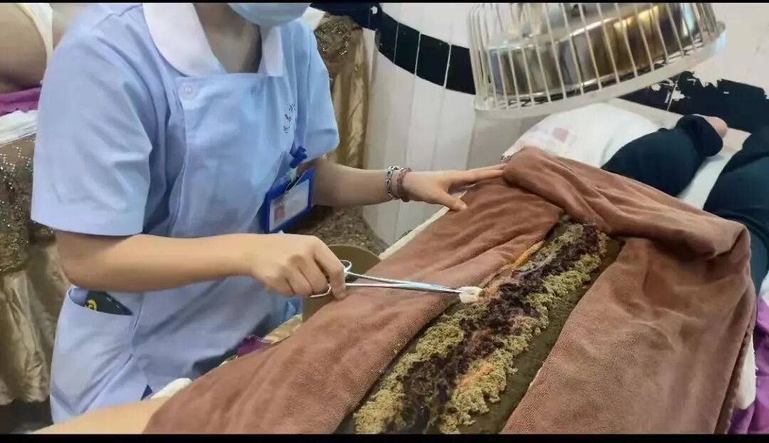 督灸是传统的外治法,主一身之阳气,通过在督脉上面用艾绒和药物共同作用于一身之阳的督脉,具有治疗时间长、作用持久、治疗可靠,安全无副作用的特点,一般治疗2—3次即可达到明显减轻病痛的效果,相对药物治疗具有治疗次数少,疗效明显,无副作用的优势。(图为督灸)