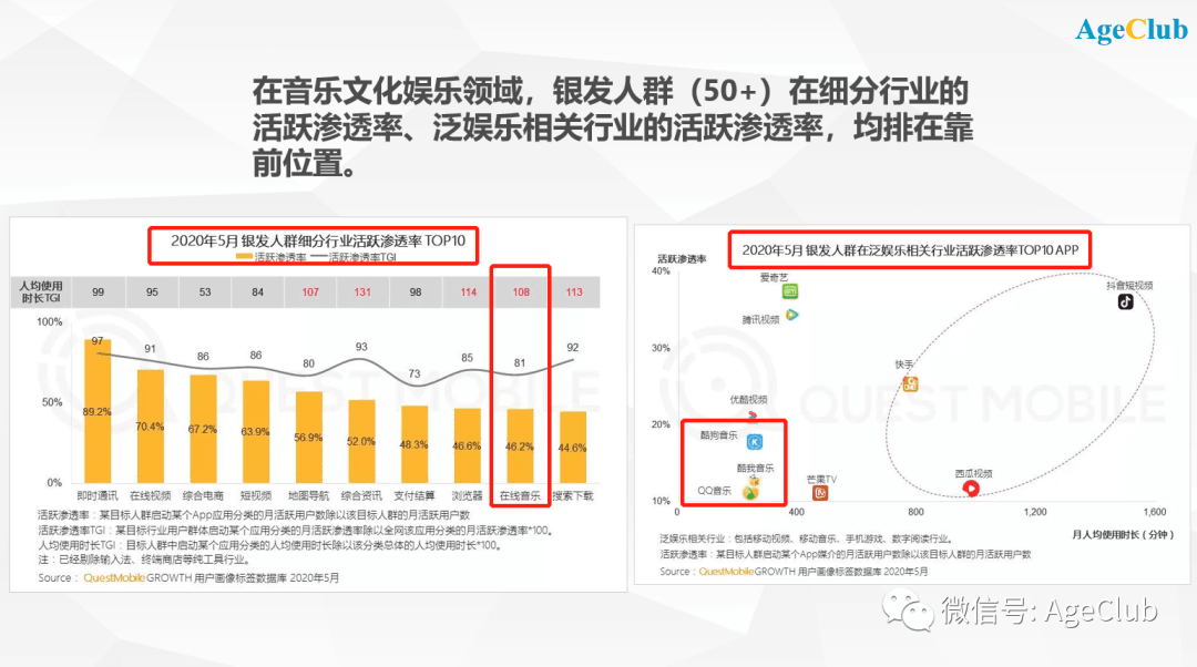 1、互联网文娱银发用户增长迅速,老年音乐娱乐场景日渐丰富