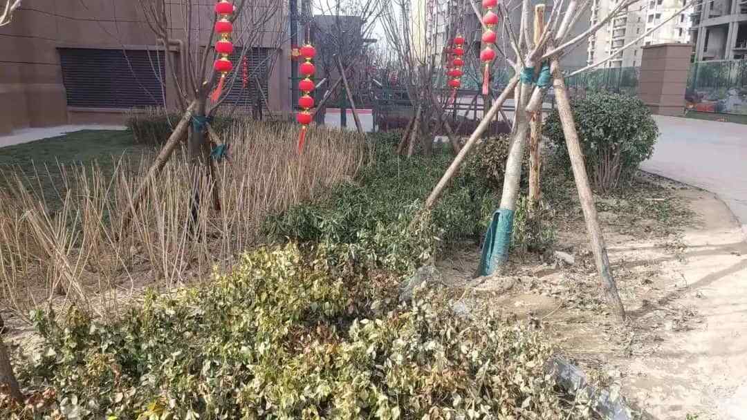 只是,现场拍摄的昂朗悦园林实景和前期的宣传资料形成了显著的“文学”反差。再接着看,自宣资料中还显示,中昂朗悦拥有浮翠流丹、碧林花漫、云溪禅境3大主题景观分区,将现代中式文化极致演绎。园林径道与植物配比相结合的形式,将不同庭园之中的休闲功能进行融合。家门口的会客厅、全龄多功能运动场、阳光活力草坪、多彩阅读课堂、夜光慢跑道、公园里景观、植物乐园、园区智能化,中昂朗悦八大亮点级景观设计,让孩子、老人都能在这里找到属于自己的一片天地,制造具有城市话题感的景观体验。因为小区未完全交付,很多亮点没有呈现,但大面积裸露的土地、枯死的草坪、斑驳的草地看起来一点都不阳光活力。