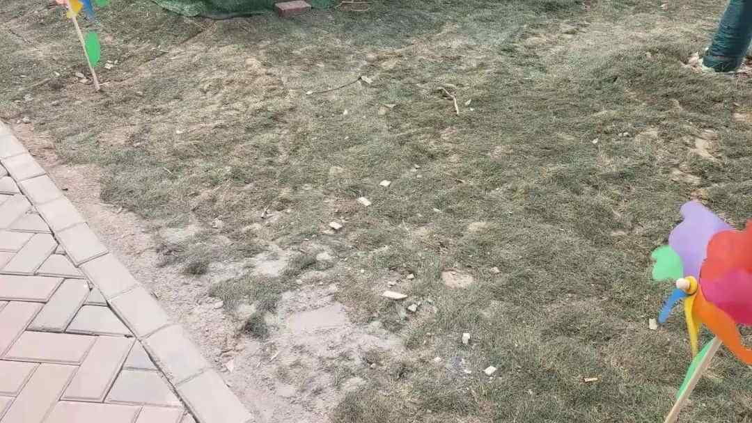 整个小区除了每栋楼的门厅前有少量的石阶,其余道路不是沥青就是透水砖。部分小道边缘的透水砖铺设得相当敷衍,松动可移:
