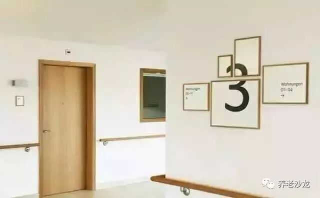 另外还可通过建立完整的标识系统来帮助老年人认知环境。醒目突出、规范严谨的标识系统可帮助老年患者方便快速的找到要去的场所,同时也有利于整个养老院动作效率和职能的发挥。标志性的雕塑、小品等环境设施也可充当标识牌的作用帮助患者辨别方位。