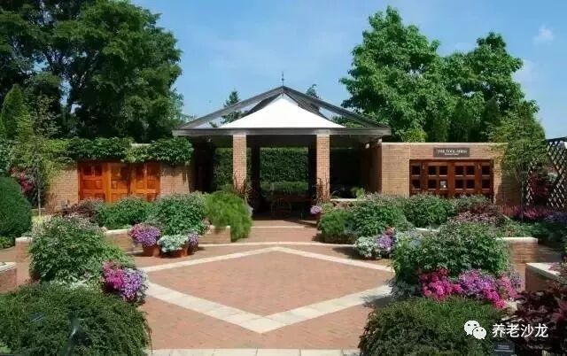 例如:美国芝加哥植物园中有许多高低错落的植物种植床,可以让不同身体状况的人都能享受此空间。乘坐轮椅的人可以在浅盘种植床的活动区域近距离的抚摸和观赏花草植物;身体不适或有腰腹疾病的人可以去触摸和感受抬升的花床。让行动障碍的老年人参与这些园艺活动不仅能平静心情加强社交还能延缓疾病。同时在养老院户外空间应为有视觉障碍的老年人设置盲道和盲文标识牌,以协助他们感知和确定方位便于行走。