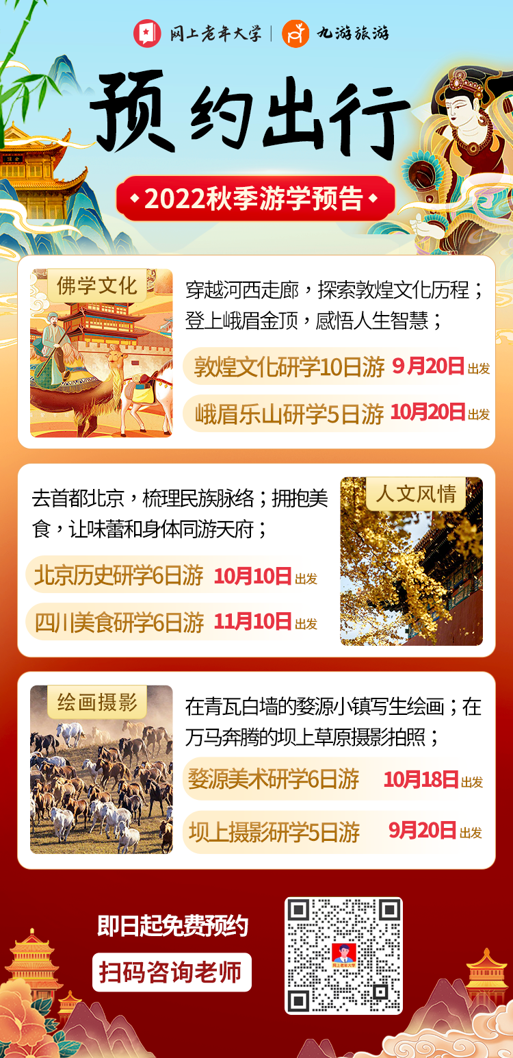 网上老年大学专属行程,学友自组成团,线上是同学,线下同游舒适自在不陌生。