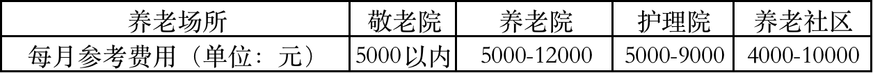 根据北京一家养老院发出来的收费标准,看下每月大概的参考费用。