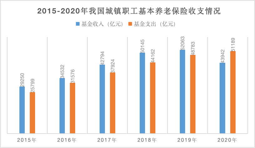 2015-2020年我国城镇职工基本养老保险基金收支情况,