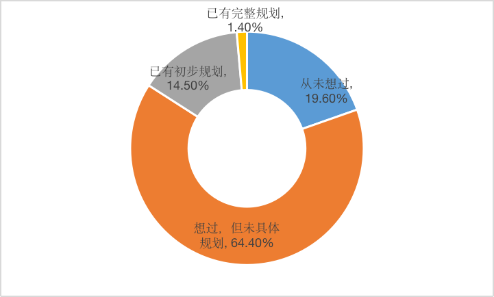 在未退休者养老规划比例中,已经完整规划的占比1.4%,从未想过的占比19.6,可见调查中未退休者的养老意识不够。