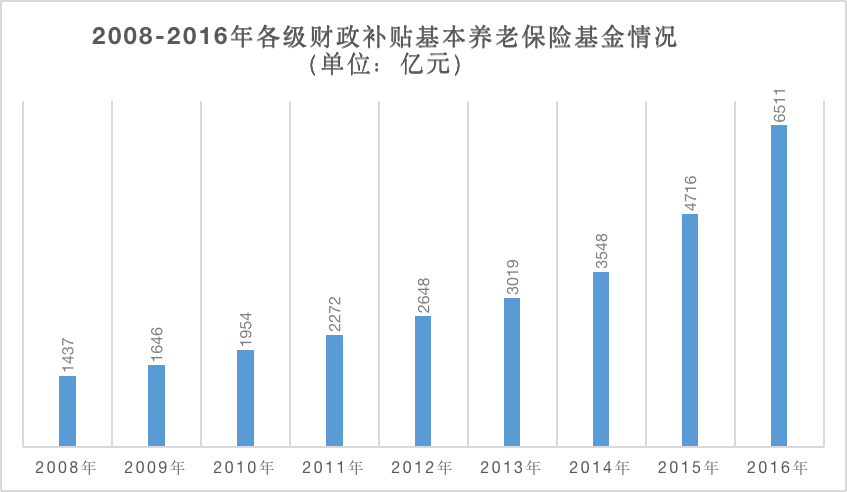 这个数字是ZF每年投入到养老保险基金的数据,大家可以看到,每年的财政补贴越来越多。