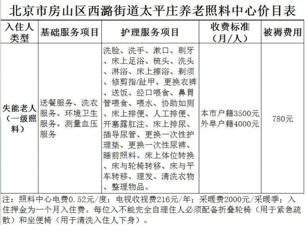 如果将失能老年人的护理工作交给第三方,市场供方的开价也不是一笔小数目,了解到的一家北京的养老服务机构的报价: