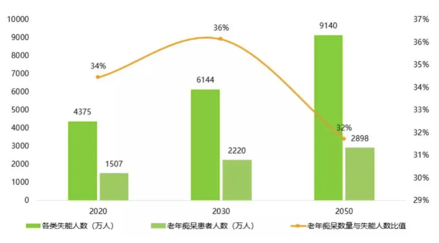 根据CRIC康养产业数据库的报告,我国目前有超过4000万的失能老人,到了2050年,预计数量能达到9000万以上。