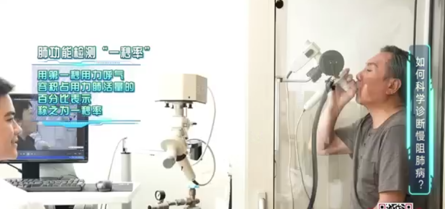 陈医生表示,肺功能(检查)是呼吸科临床最常见的功能学检查,它是诊断慢阻肺的金标准——即一秒率(指第一秒用力呼气容积占用力肺活量的百分比)。