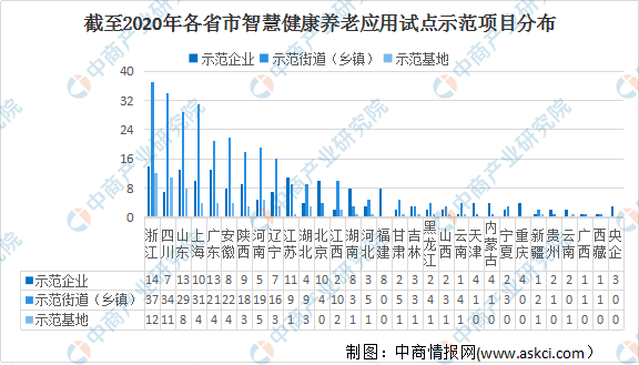 近年,国家三部委公布了四批次共计531金时族个智慧健康养老应用试点示范项目,覆盖了我国的大部分省份。其中浙江的智慧健康养老应用试点示范项目最多,共计63个,示范企业14家,示范街道(乡镇)37个,示范基地12个。